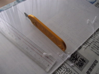 アクリル板は、ある程度まで溝を切ると、軽い力でパキッと割る事ができます。