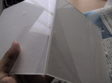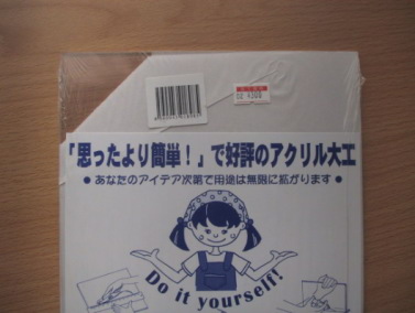 置き台用に、プラスチックのアクリル板を買いました。300円でした。