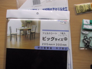 フェルトシートです。\680でした。裏がシールになっています。アクリル板に貼り付ける為に購入しました。