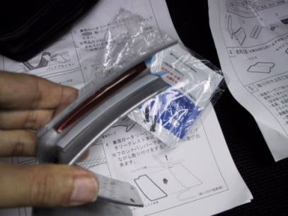 付属しているプライマーの染みこんだシートは、以前、ステアリングスイッチのピアノブラックパネルを取り付けた時に使用した物と同じ物でした。